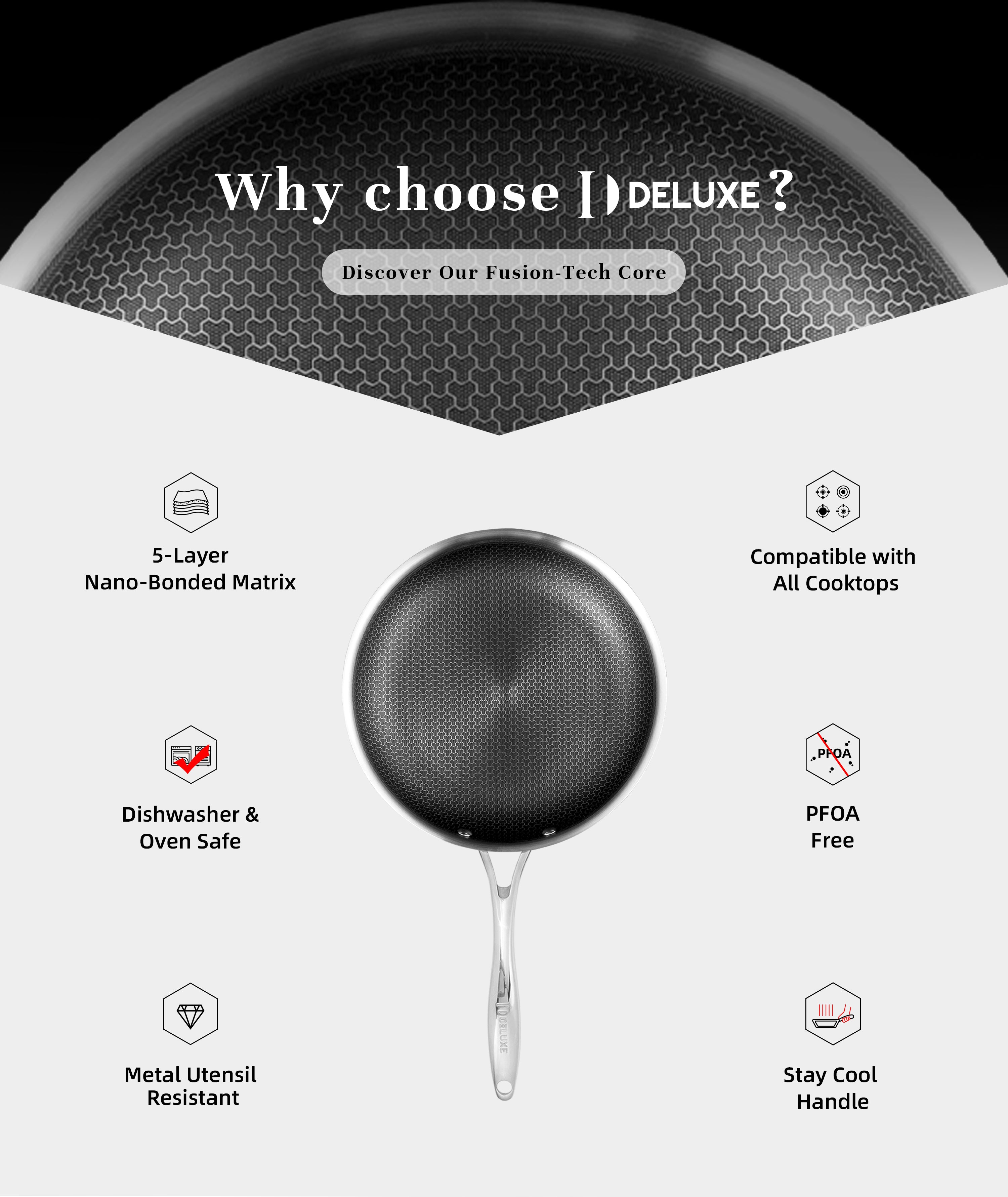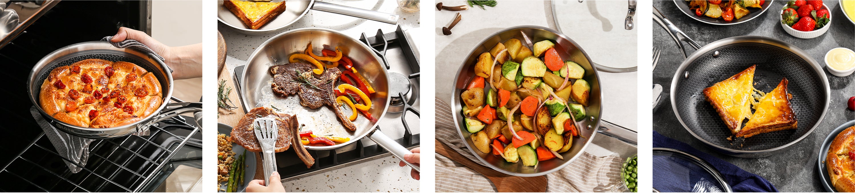 - 3-in-1 Hybrid Cookware: Nonstick convenience + stainless steel
